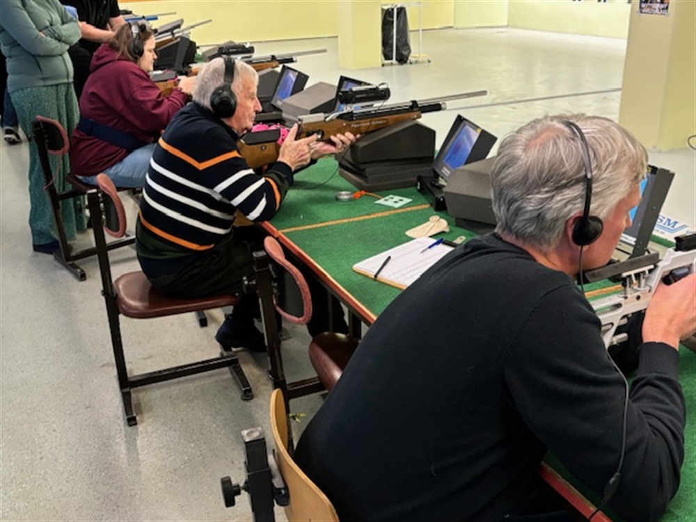Totalt fanns fem utrustningar på plats för att prova på, därtill såväl luftgevär och luftpistoler för medföljande. Fortsatt kommer den lokala föreningen i Alvesta att förfoga över två utrustningar för synnedsatta, den ena med stöd från Skyttesportförbundet och den andra från Parasport Sverige.